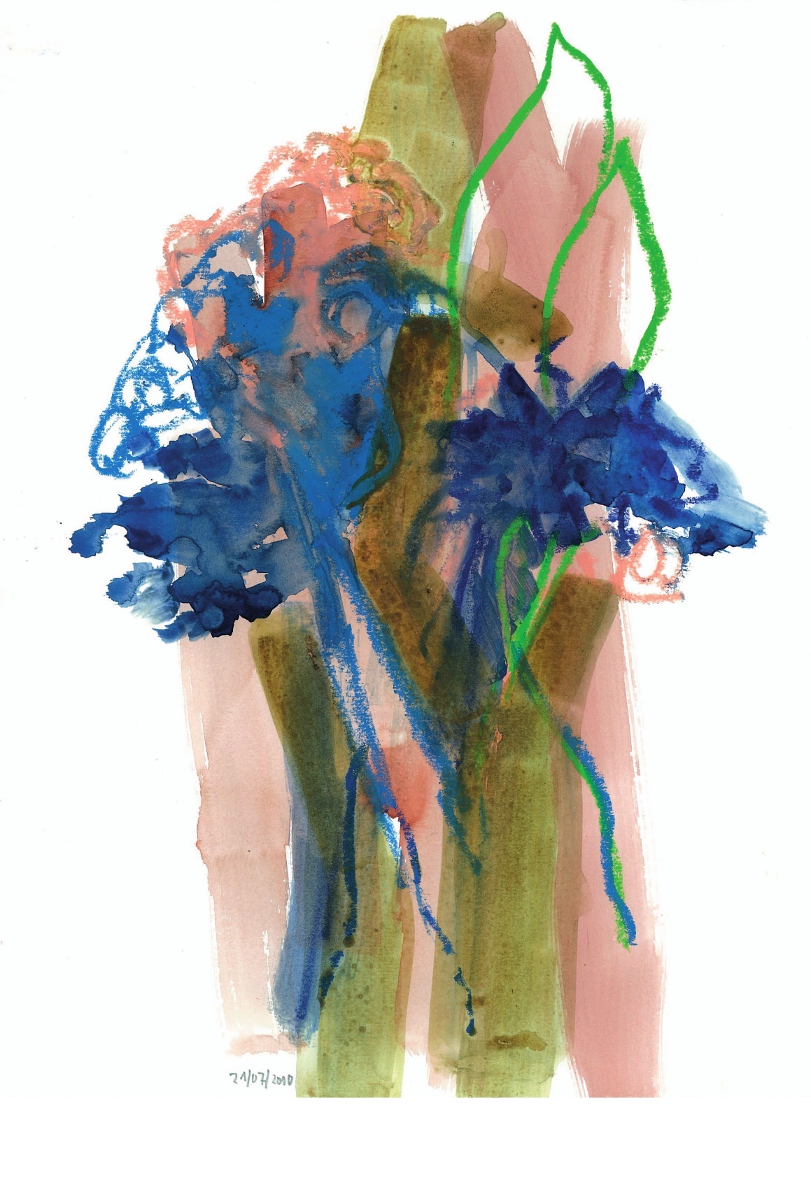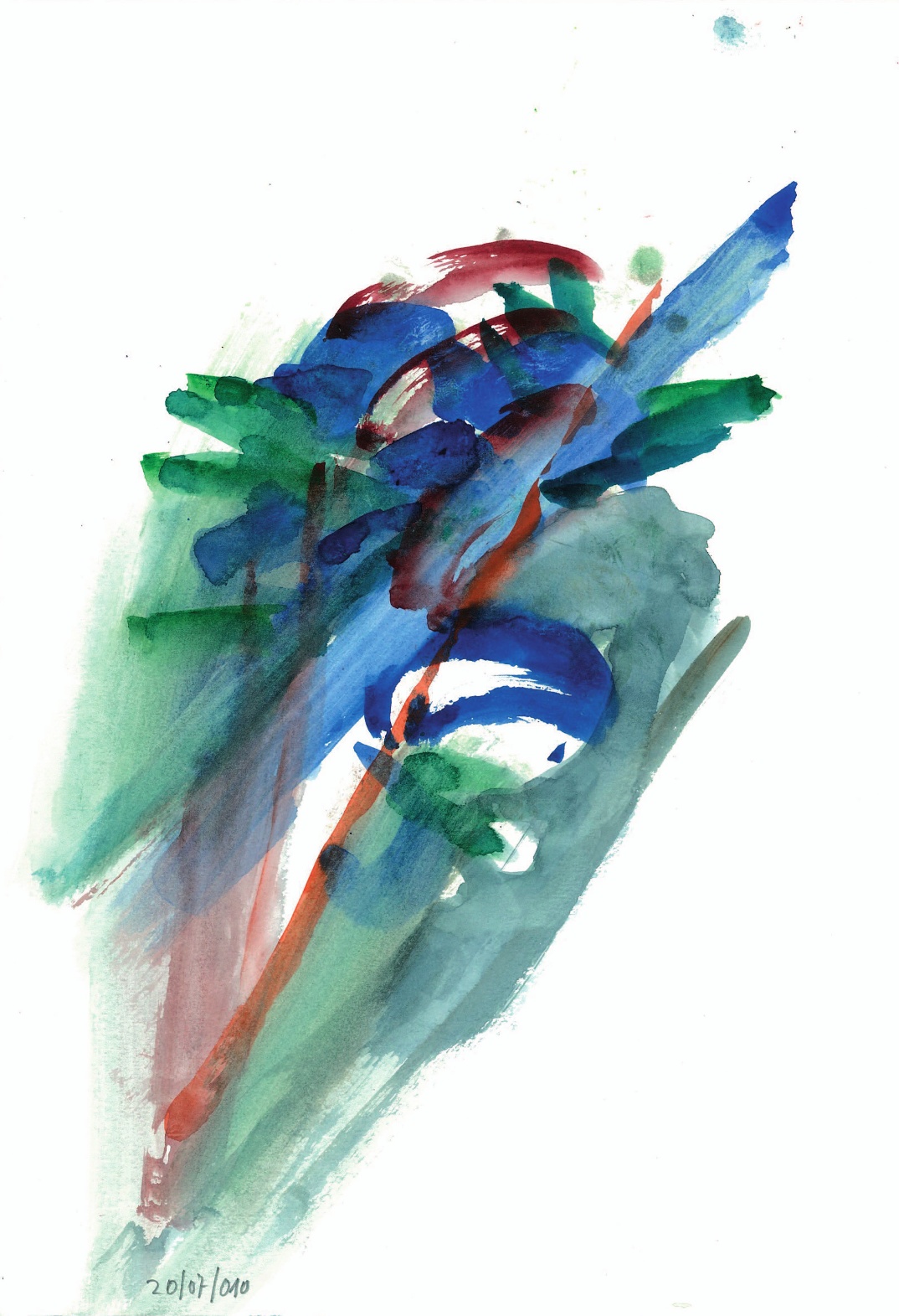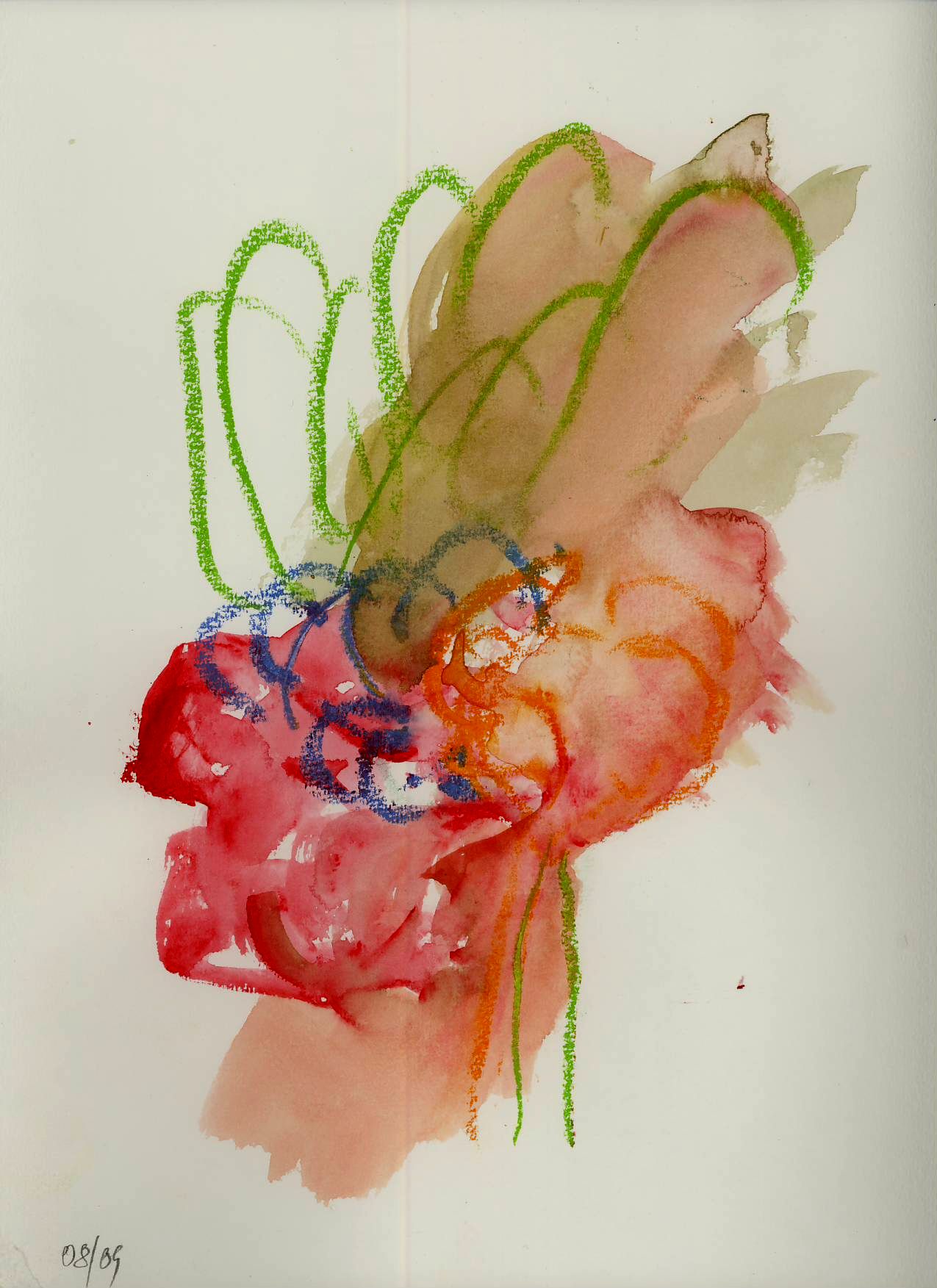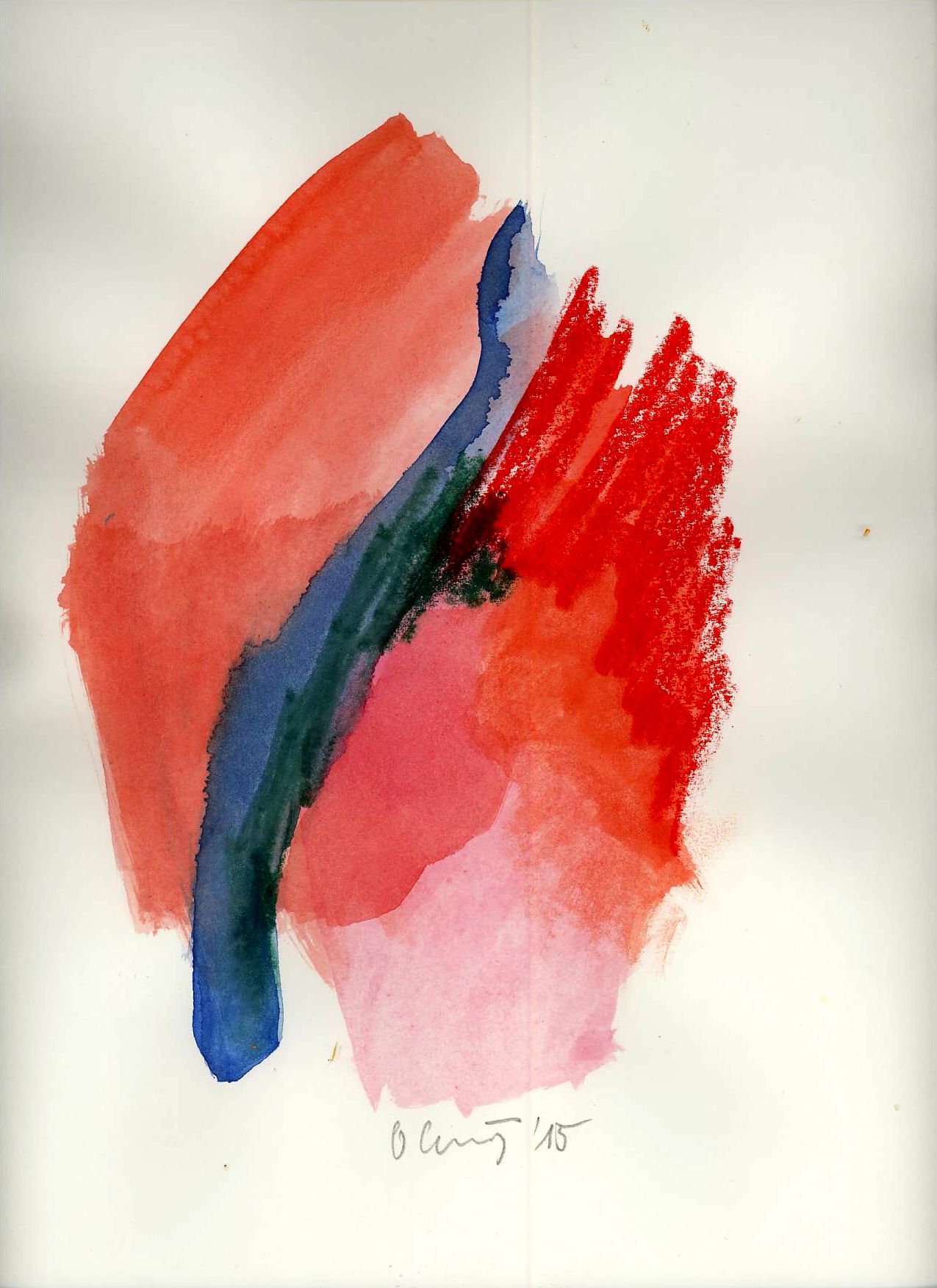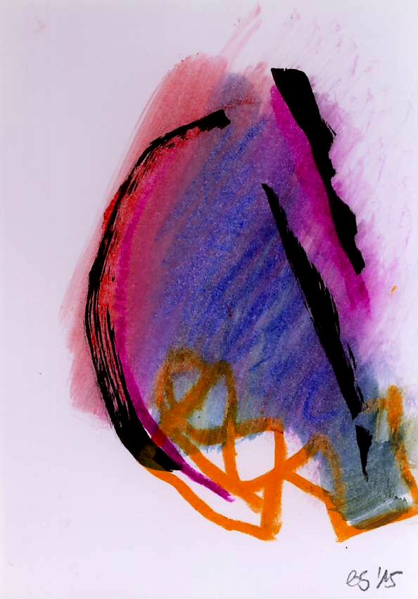 Denn seit Jahren malt er am liebsten mit „Wasserfarben“. Dabei liegen seine künstlerischen Anfänge ganz in der Tradition eines informellen, pastos gelenkten Gestus mit Ölfarben. Aber mit den Jahren drängte es ihn immer mehr zum Arbeiten mit dem ganz lapidaren Medium, das gemeinhin als Freizeittechnik eingesetzt wird. Das gilt freilich seit der Romantik unter Malern nicht mehr, sondern nur noch bei den unterhaltenden und unterrichtenden Zünften. Schütz lässt sich von diesem unaufwändigen Medium faszinieren. Zwei Dinge fesseln ihn besonders: Die intensive Farbigkeit mit der ihr immanenten Transparenz und vor allem der Zwang zur Beschränkung, zur behutsamen Setzung und der unumkehrbaren Entscheidung.
